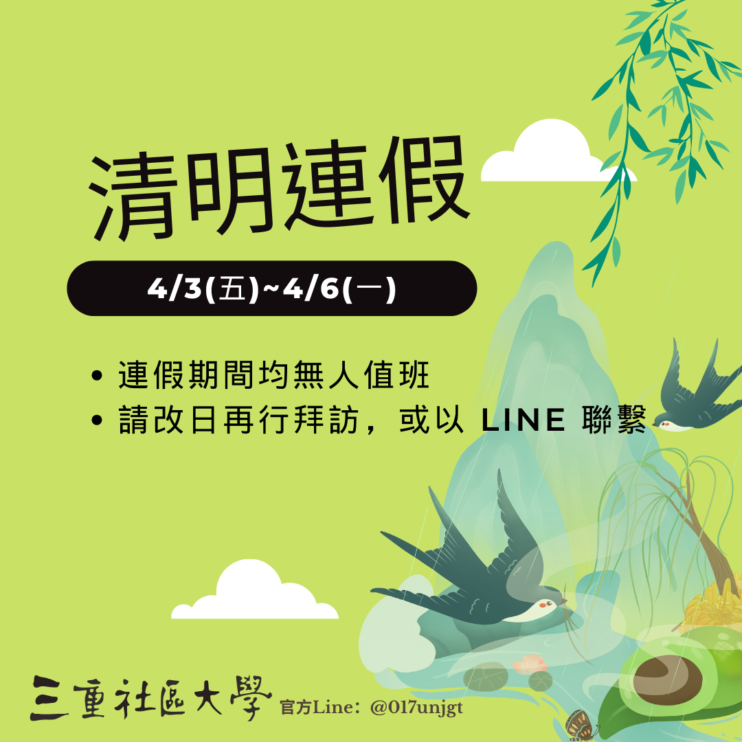 【三重社區大學-清明假期公告】