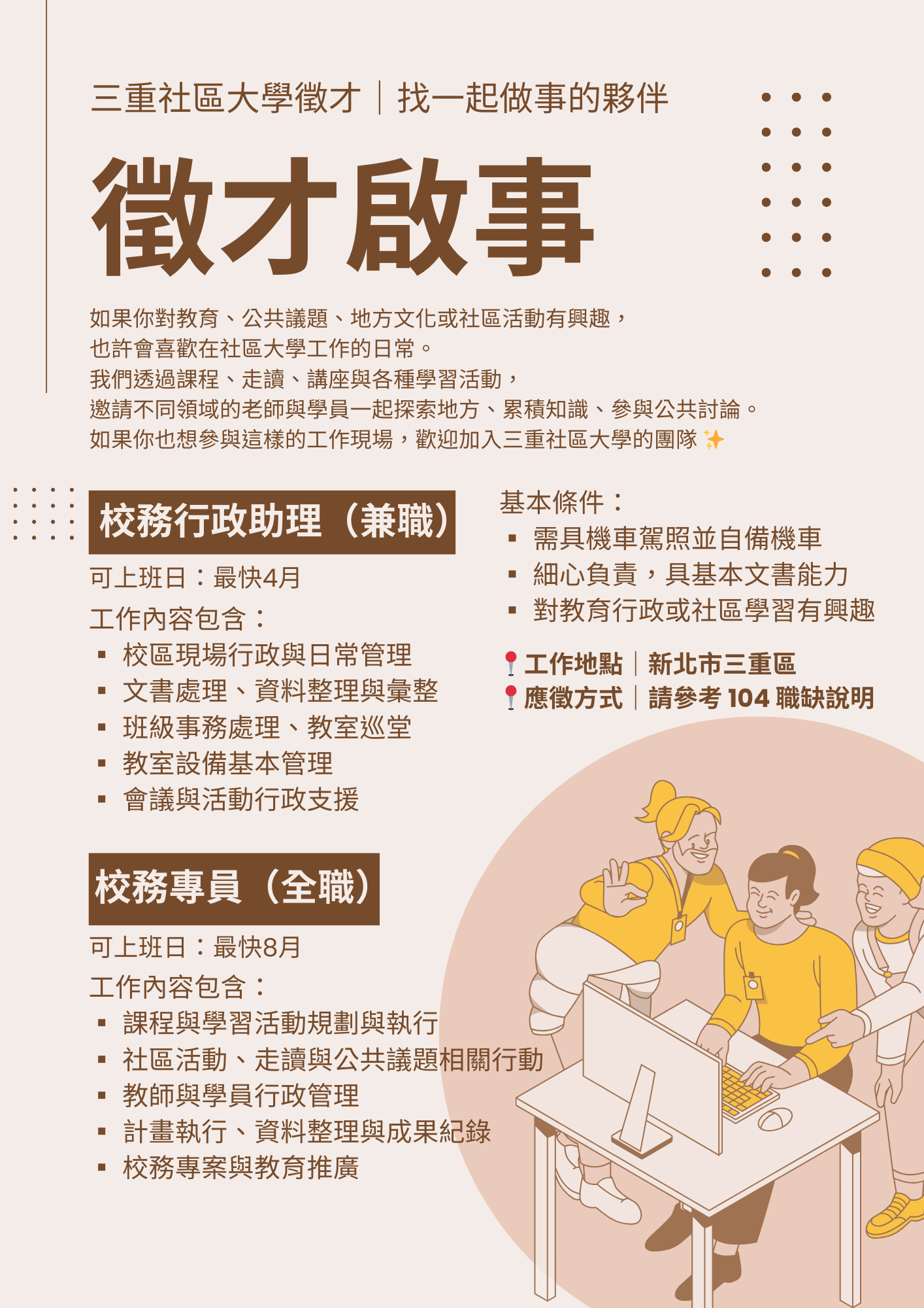 如果你也想參與這樣的工作現場,歡迎加入三重社區大學的團隊